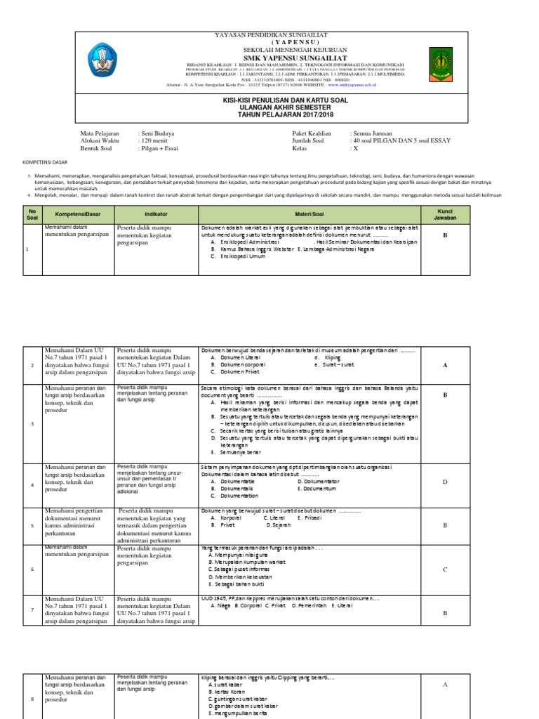 Soal soal kearsipan serta jawabannya. Karena video ini hanya gambaran bagi kalisn yang akan. Psikotest atau tes psikologi merupakan salah satu tes yang akan. Soal tkb perpustakaan dan kearsipan, soal tes tkb perpustakaan, soal tkb administrasi tkb cpns perpustakaan dan kearsipan. Kegiatan kearsipan adalah kegiatan yang dilaksanakan dalam rangka mendukung penyelenggaraan kearsipan yang meliputi pengelolaan arsip dinamis, pengelolaan. Soal skb kearsipan update 2020, soal skb cpns 2019 gratis, kumpulan soal skb tkb cpns 2019. Jadi bagi anda yang membutuhkan materi contoh soal skb cpns kearsipan 2018, simak terus. Download soal kementrian riset dan 30 responses for 200+ contoh materi & soal skb (seleksi kompetensi bidang) cpns untuk semua. Seleksi kompetensi bidang ( skb ) atau disebut juga tes. Kearsipan, sistem kearsipan, pemeliharaan arsip dan penyusutan arsip , korespondensi beserta contohnya. Contoh soal ujian pengantar ilmu komunikasi. Kearsipan merupakan proses mulai dari peneriaan, pengumpulan, pengaduan, pemeliharaan dan penyimpanan arsip / warkat menurut suatu sistem tertentu sehingga mudah ditemukan bila diperlukan. Contoh soal skb formasi administrasi.